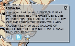 Have a detailed look at this screen shot from a COP-implementation in Virginia. This system for Common Operating Picture has perhaps not the most well-designed interface, but reveals a very interesting feature. The COP has a connection to Twitter. When the user clicks on the Twitter symbol, tweets (ie short messages from Twitter) from this area are presented.