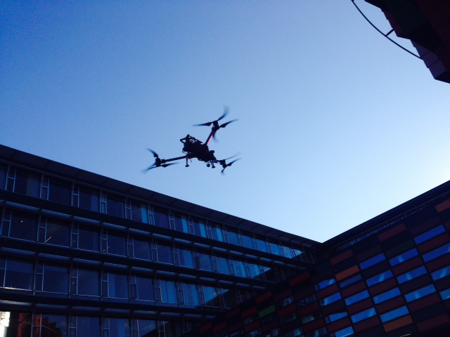 Today, friends from SAAB and Lindholmen Science Park organized a nice drone-seminar and demo at the Kuggen-building where we at Interaction Design at Chalmers have our offices. This meant that my morning plans were slightly modified since I was intrigued by the demonstration of one of the drone-platforms. The seminar attracted a diverse group of people including people from the local fire and rescue services.