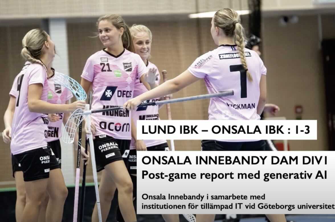 Generative AI has immense potential to revolutionize Swedish sports, and we’re just beginning to scratch the surface. Imagine post-game reports not as static summaries, but as rich, engaging narratives that bring the energy, emotions, and insights of the game straight to fans, players, and coaches. This is precisely the exciting direction of research at the Swedish Center for Digital Innovation in the Department of Applied IT at the University of Gothenburg, in collaboration with the women’s floorball team at Onsala Innebandy this fall.